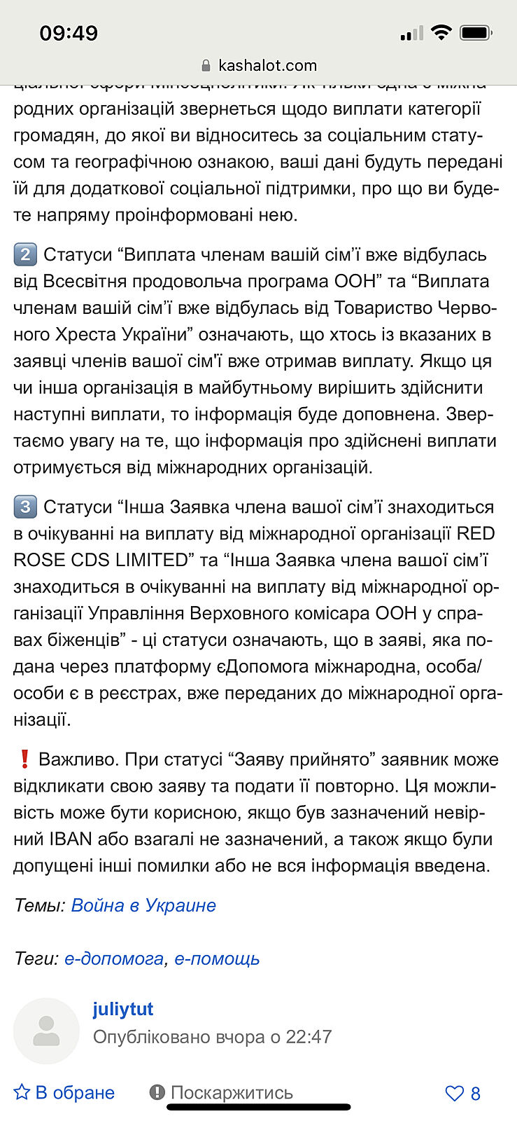 2️⃣ Статуси “Виплата членам вашій сім’ї вже відбулась від Всесвітня продовольча програма ООН” та “Виплата членам вашій сім’ї вже відбулась від Товариство Червоного Хреста України” означають, що хтось із вказаних в заявці членів вашої сім´ї вже отримав виплату. Якщо ця чи інша організація в майбутньому вирішить здійснити наступні виплати, то інформація буде доповнена. Звертаємо увагу на те, що інформація про здійснені виплати отримується від міжнародних організацій.