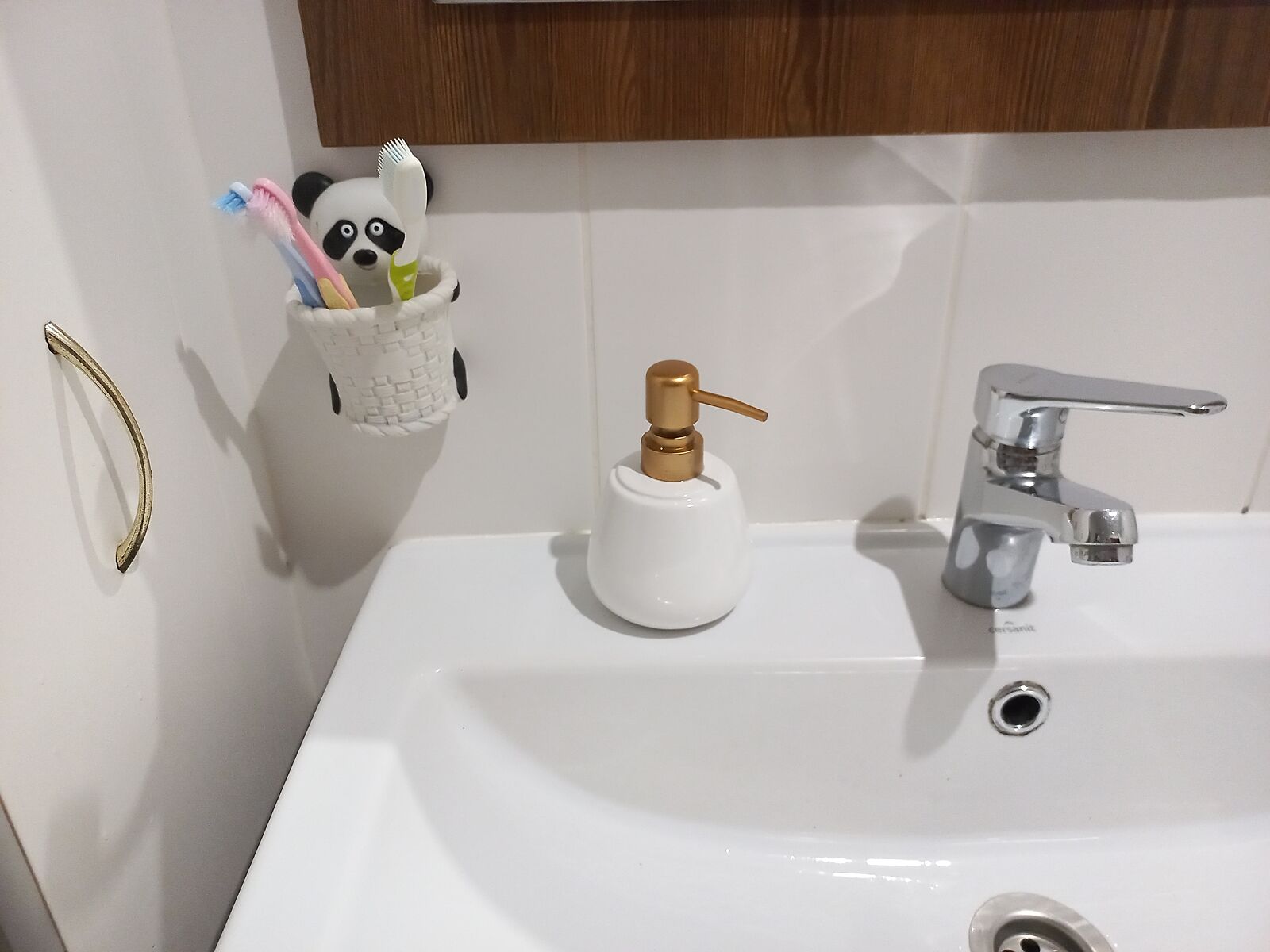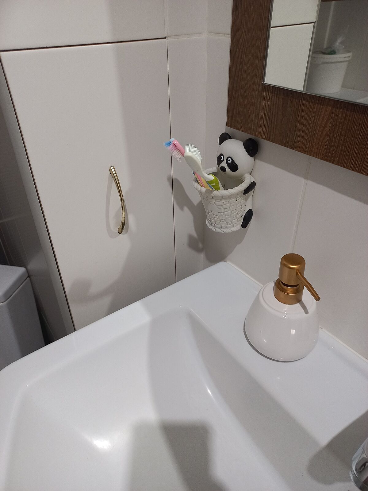 Пока зрозуміла, що за шкафчик;)) ревізійний люк на магніті. Панда то для дітей, купили колись в єві, до речі, дозатор 49 грн по знижкам був, теж доволі приємна ціна