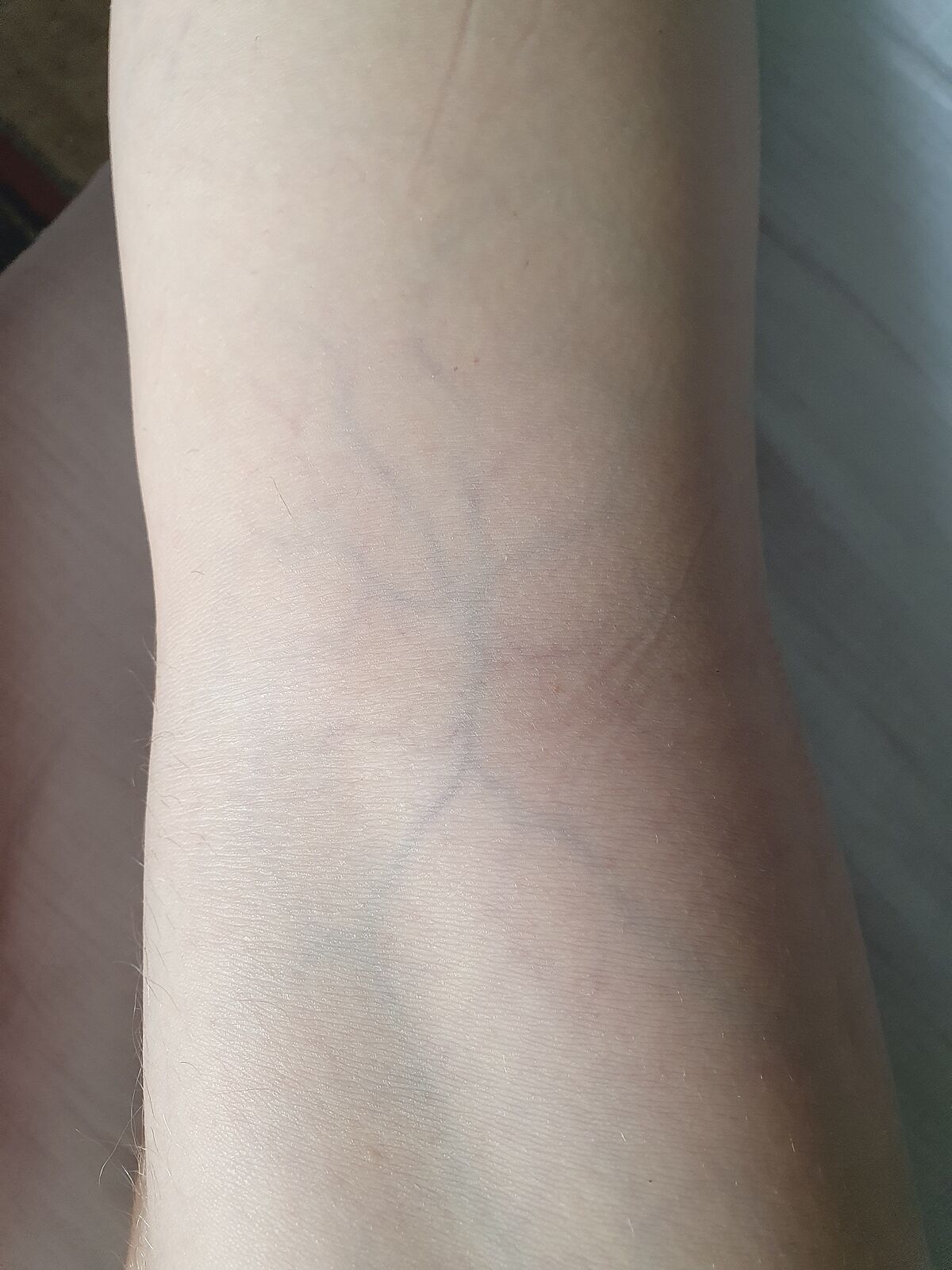 Так же почти . На одной ноге больше видны Вены на другой меньше … ещё есть сеточки сосудистые (похоже как на носу у многих бывает) ходила к флебоголу , узи вен сделал сказал все в порядке . Чисто косметически можно убрать но все будет возвращаться (я о сетке ) доктор сказал