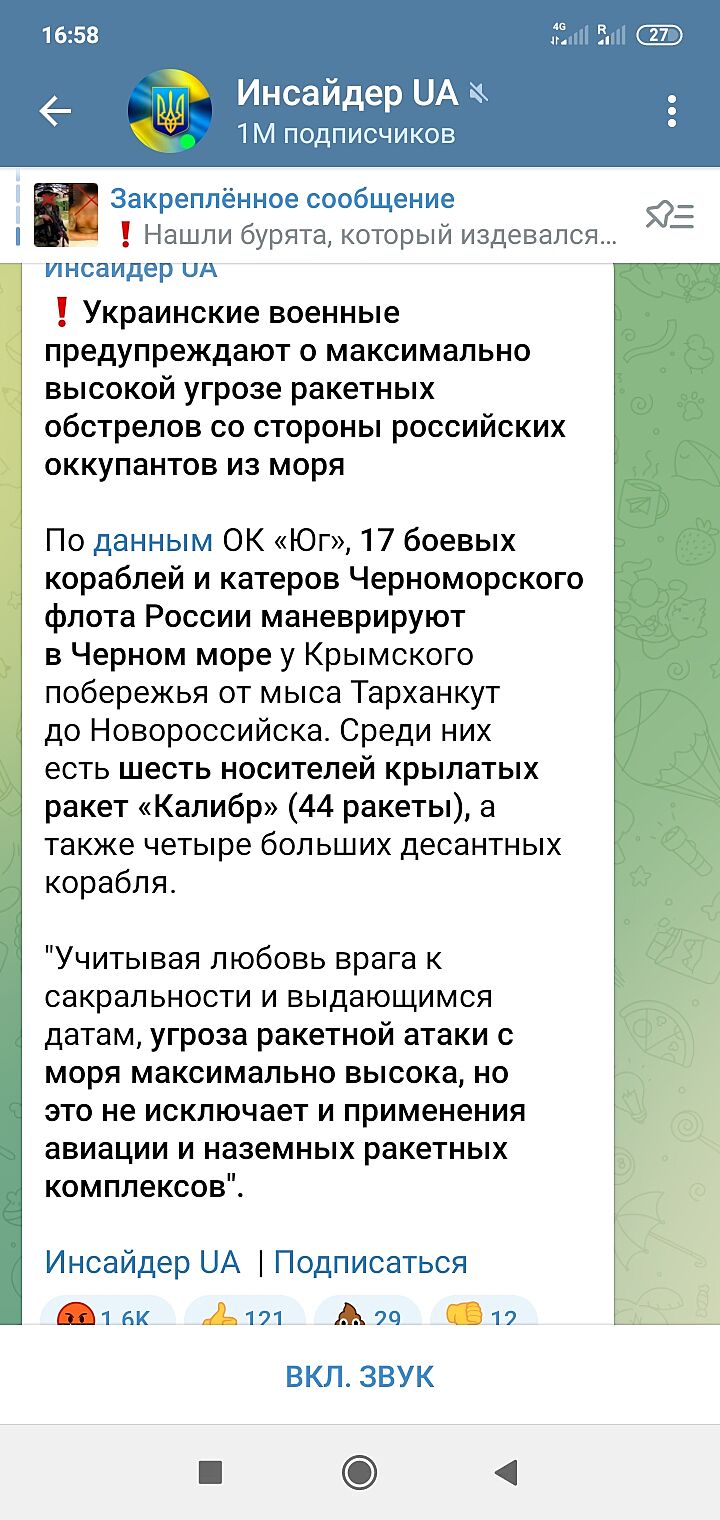Возможно. Они парад в Севасе с кораблями отменили, вот нашпиговали их ракетами и отправят пулять не для красоты, а по нам. Пипец... а я жила в Севастополе до 14го и любила день ВМФ. он тогда еще был совместный российский и наш флот вместе. А сейчас вот такое. Вроде и приняла уже за пол года войны, а все равно иногда всплывает, что никак на уши не натяну. Кто тогда думал что до такого доживем.