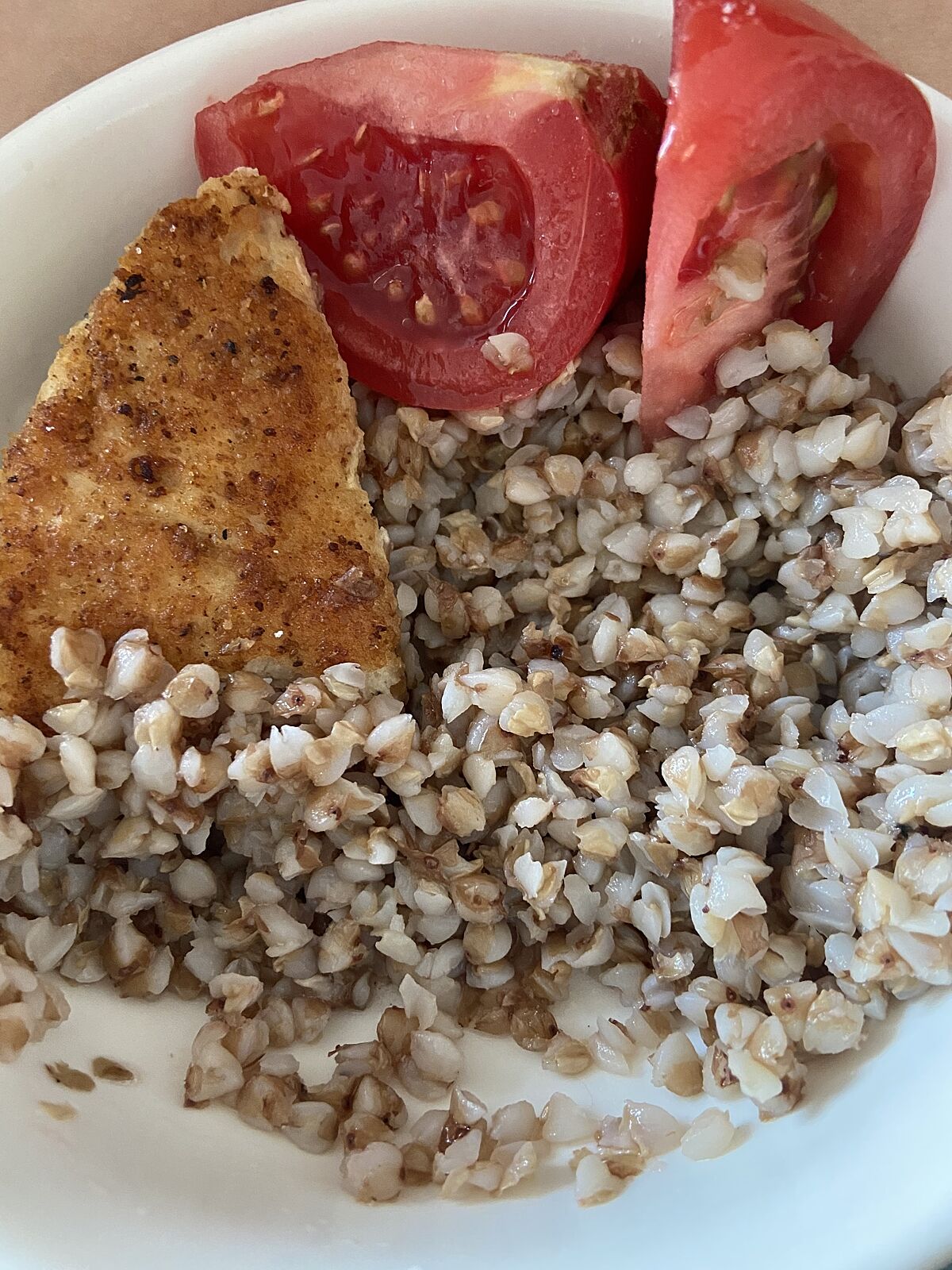 На вид сухо, хотелось бы или подливу или соус. Жевать гречку без ничего, то еще удовольствие.
