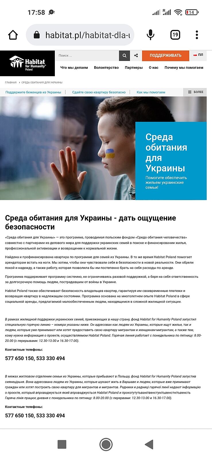 Можете в Польшу приехать по программе 40 + первое время + другие выплаты! Оставляю ещё инфо о фундации Habitat, можно к ним обратиться за помощью !