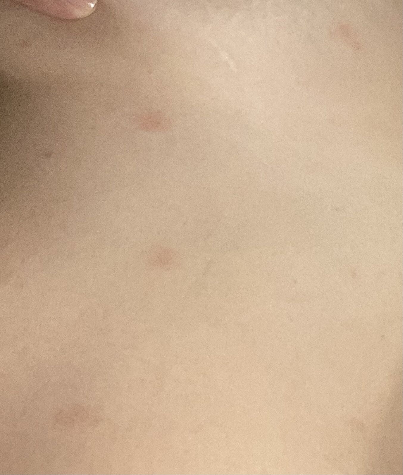Приймала душ у вечері та побачила на шкірі у себе, а я доросла жінка, червоні цятки нечіткої форми, не болить , не зудить, плями сухі . Одна цятка більше ніж 5 копійок і штук 10 цяток , що бачу, менші За розміром. Що це може бути? ((( фото наче не страшні і не соромні))