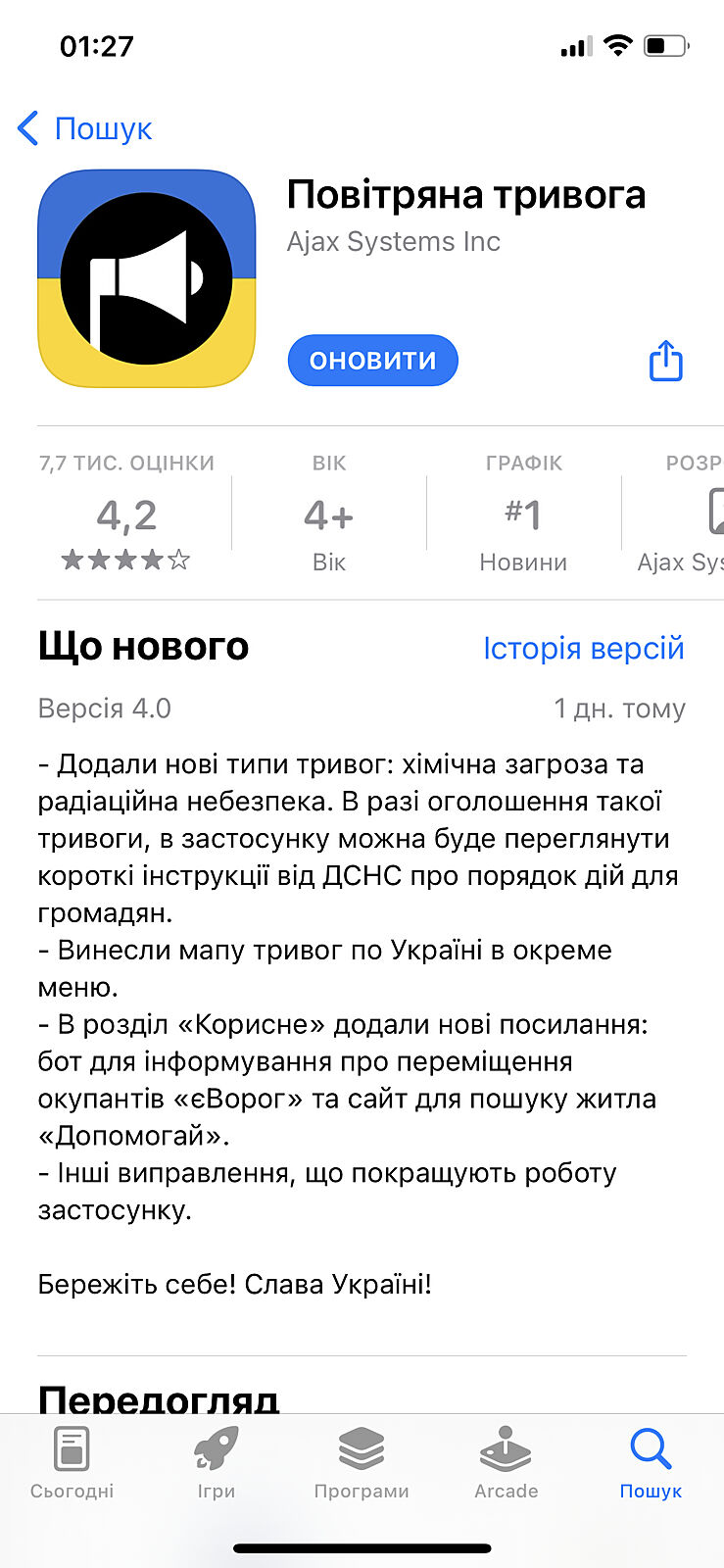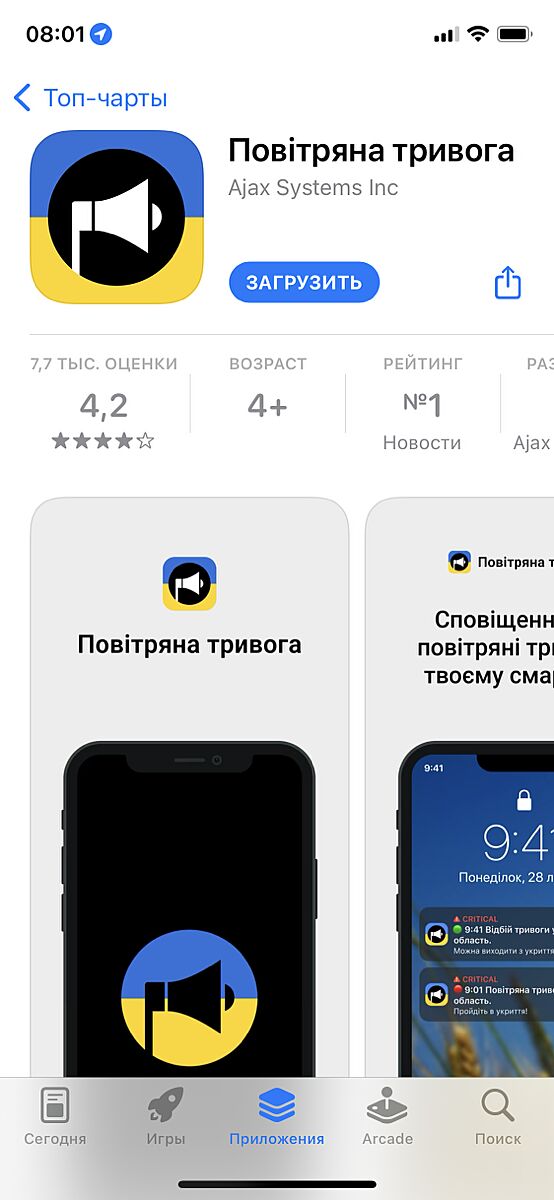 А профи такая необходимость в приложении? Телеграмм установите, подпишитесь на канал вашего города с тревогами и будете знать.