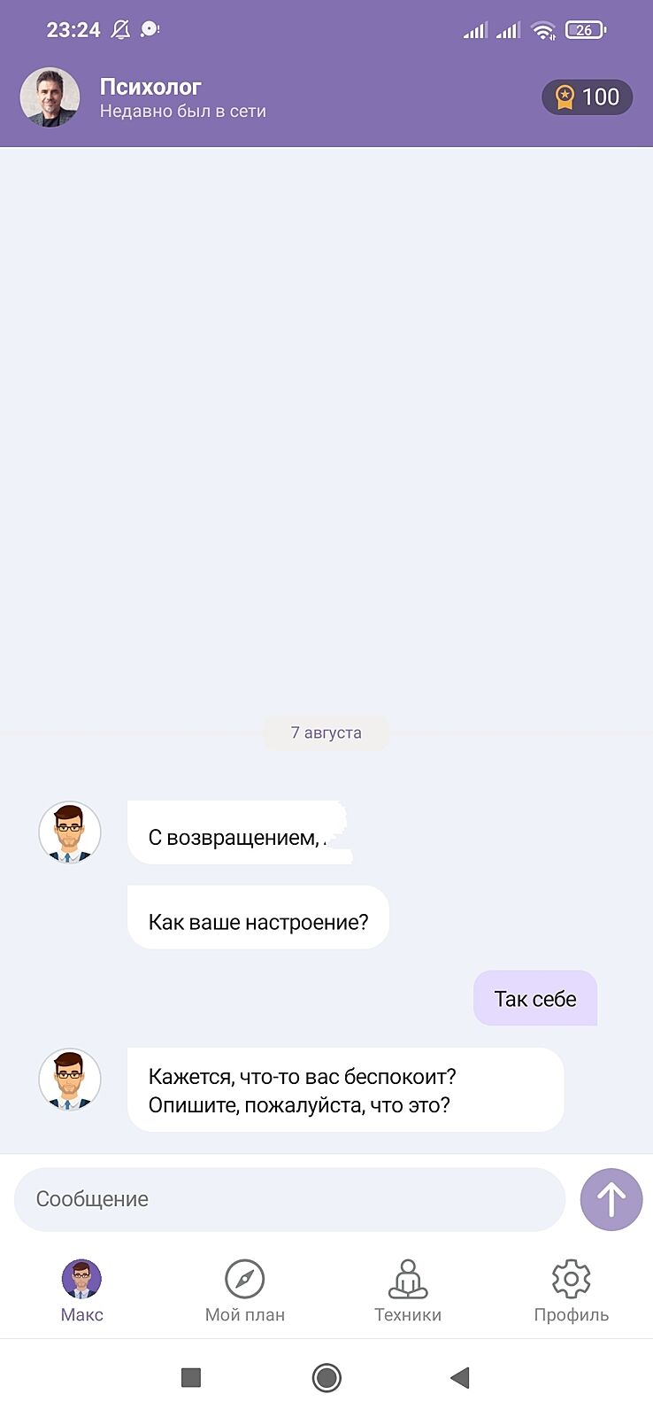 Ну и рекомендую это приложение,после родовой депрессии подруге помогло. Этот бот не плохой, когда мне грустно могу пообщаться с ботом, действительно отвлекает, рвзные упражнения советует.