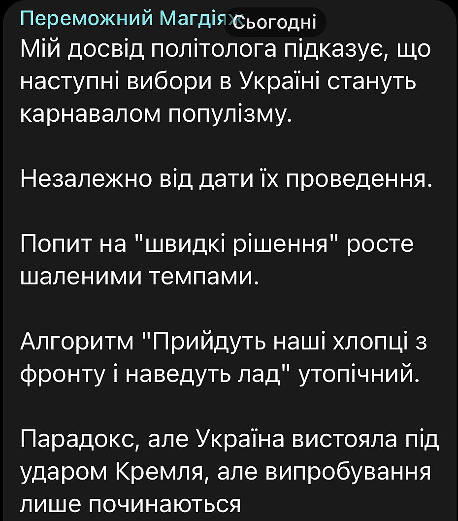 Ну ось я про сее думаю - може взяти і піти? А потім розумію що доведеться з однієї сторони виримувати вічні скарги народу, як оце ми ниємо наразі, з іншої - погрози олігархів та сильних світу цього.