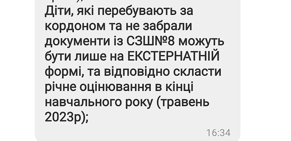 Дочка идёт в 10 класс. За границей нам огласили, что они (украинцы) будут учиться два года в интеграционном классе (8-й и 9-й), а потом пойдут в 10, в к-м нужно учиться ещё год или два, только потом можно будет поступить в колледж. В школе дети до 3-х часов плюс они должны быть социально активными и посещать дополнительные кружки с 7 до 9 вечера. При таком графике при всём желании времени для украинской школы просто не останется. Но мы возвращаемся в Украину. Тем, кто остаётся, наверное только экстернат в таком случае подойдёт, хотя будет сложно совмещать.