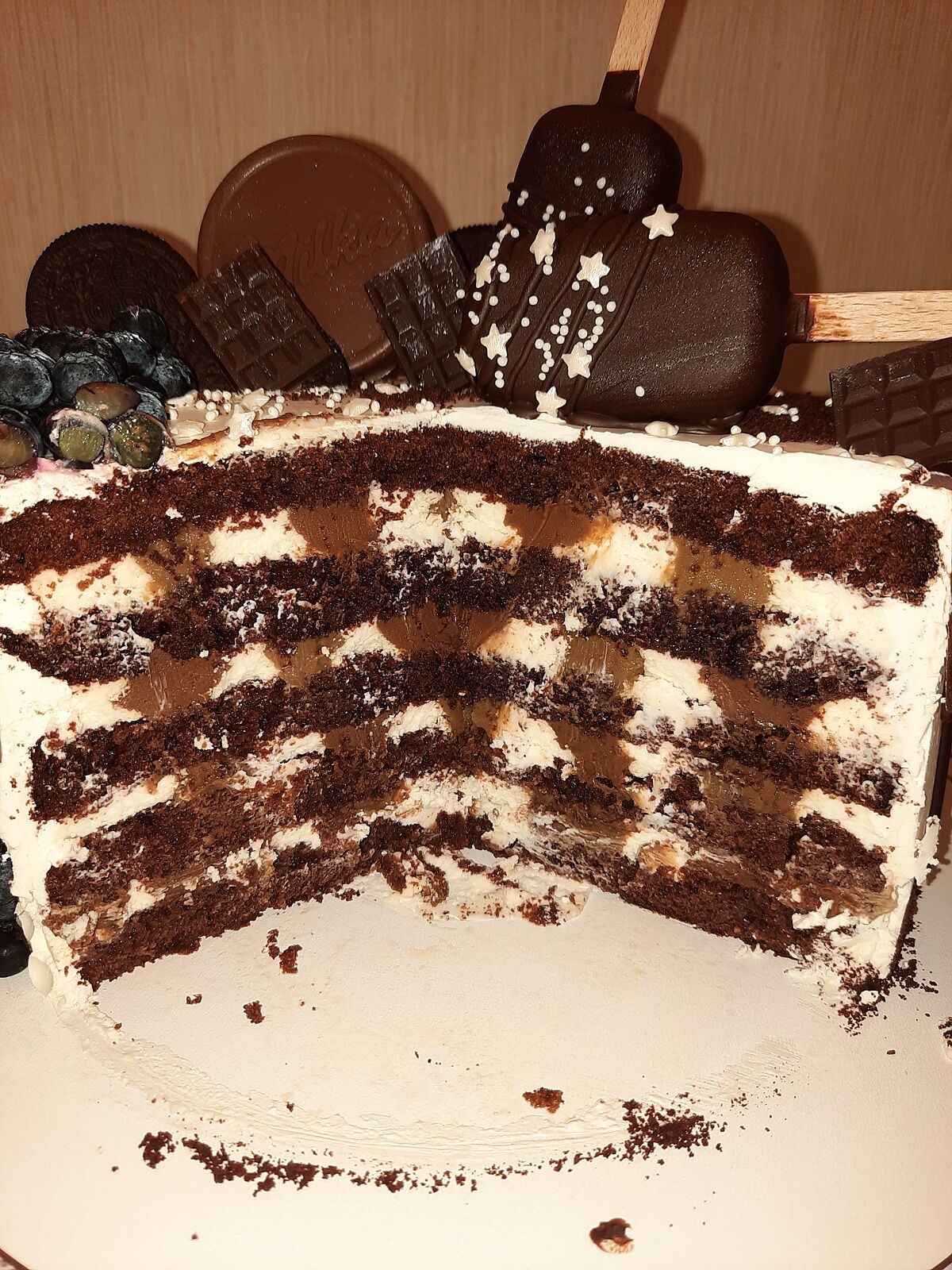 Вот что получилось. Первый ра такой делала. ^Мокко^. Так и не попробовали, уехали, торт с собой, кусман отрезала, дочка зайдет заберет