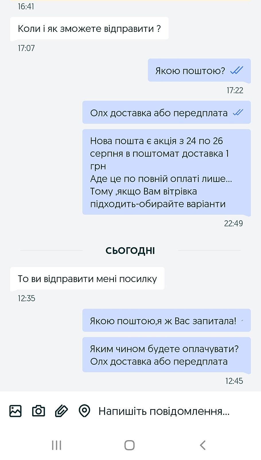 От прикол би був,якщо я б написала у відповідь’вже посилка їде до вас’🤣