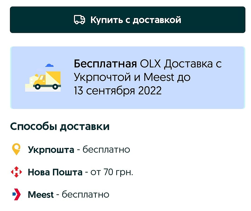 Хм, цікаво Вже в декількох продавців на ОЛХ читаю на сторінках товару: ОЛХ доставка Укрпочтой бесплатно до 25.08.2022 р.