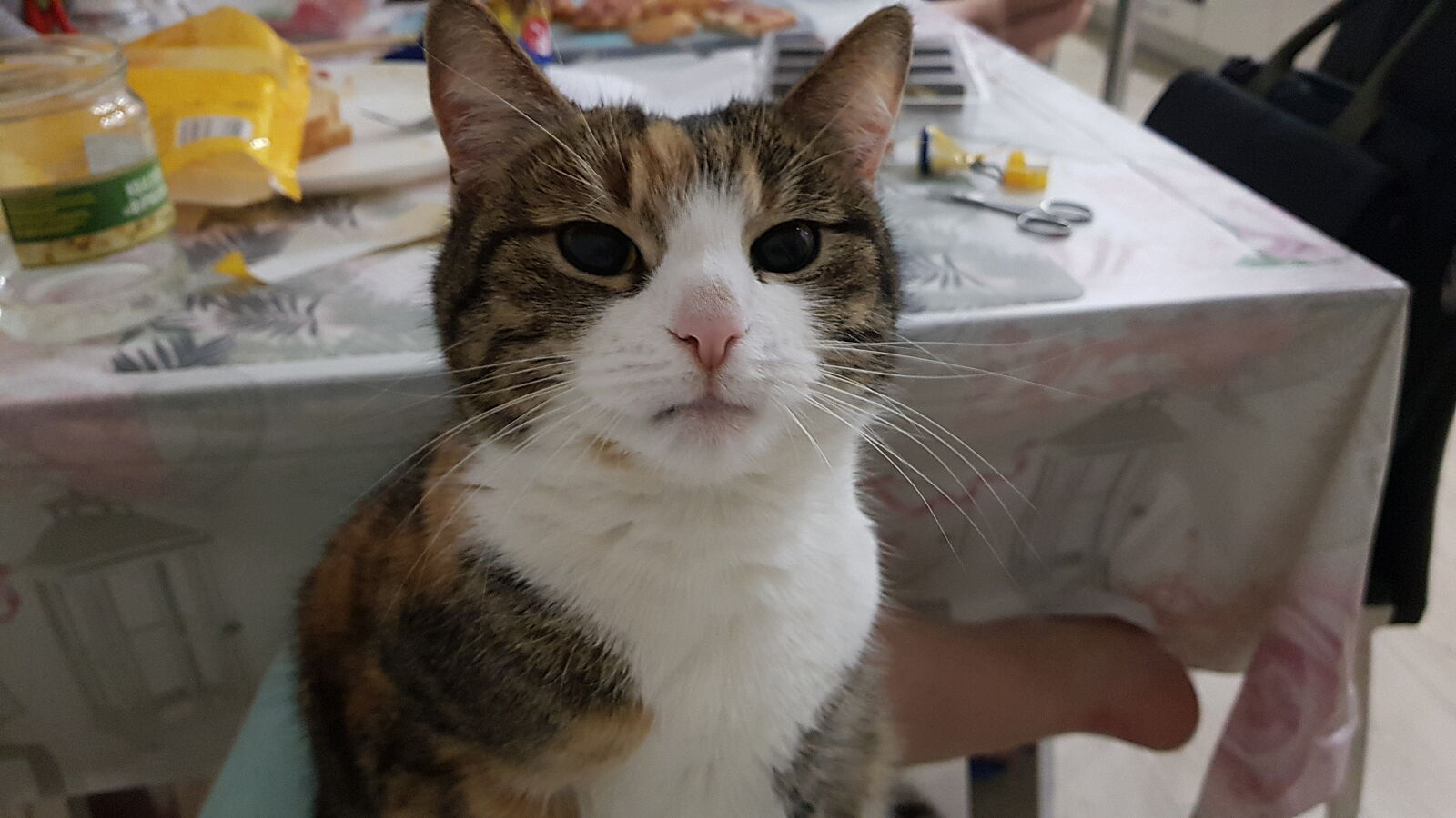 Она у нас с февраля. Дворовая кошка, ее подкармливали все и Муркой звали. Холодно было очень, мы с дочкой ее забрали. Не обижали, лишний раз не трогали. А она так и не привыкла к нам(. Сидит где то, только кушать выходит.