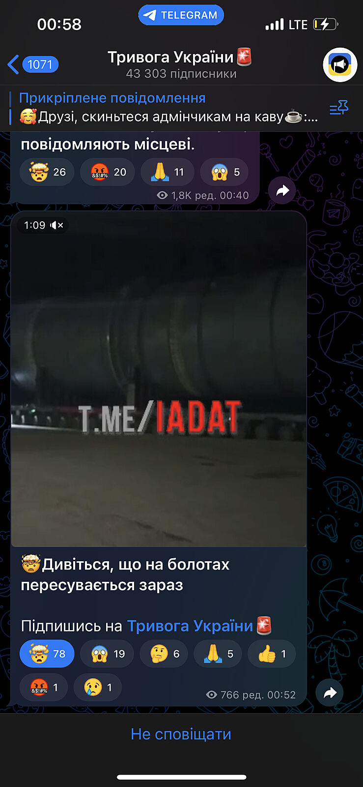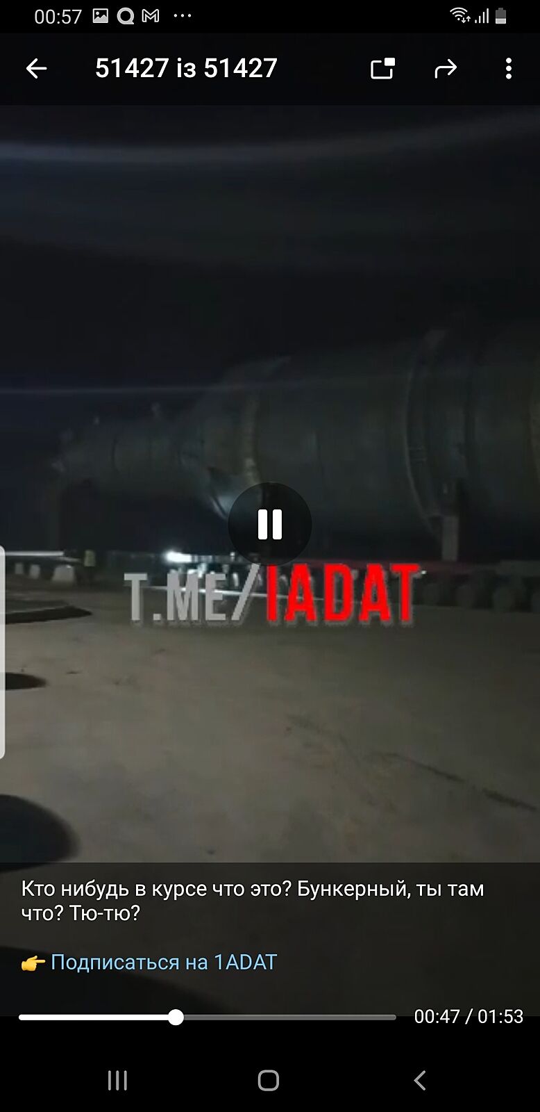 Толстая огромная труба, я не знаю что это. Надеюсь это не носитель+ракета.