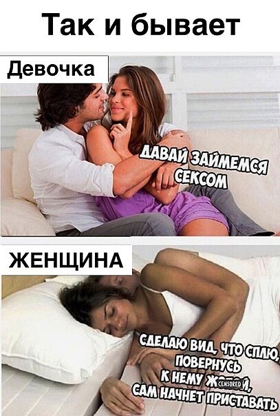 Я - сова, а он - жаворонок. Так что, я сама всегда пристаю к нему спящему, как только дети уснут