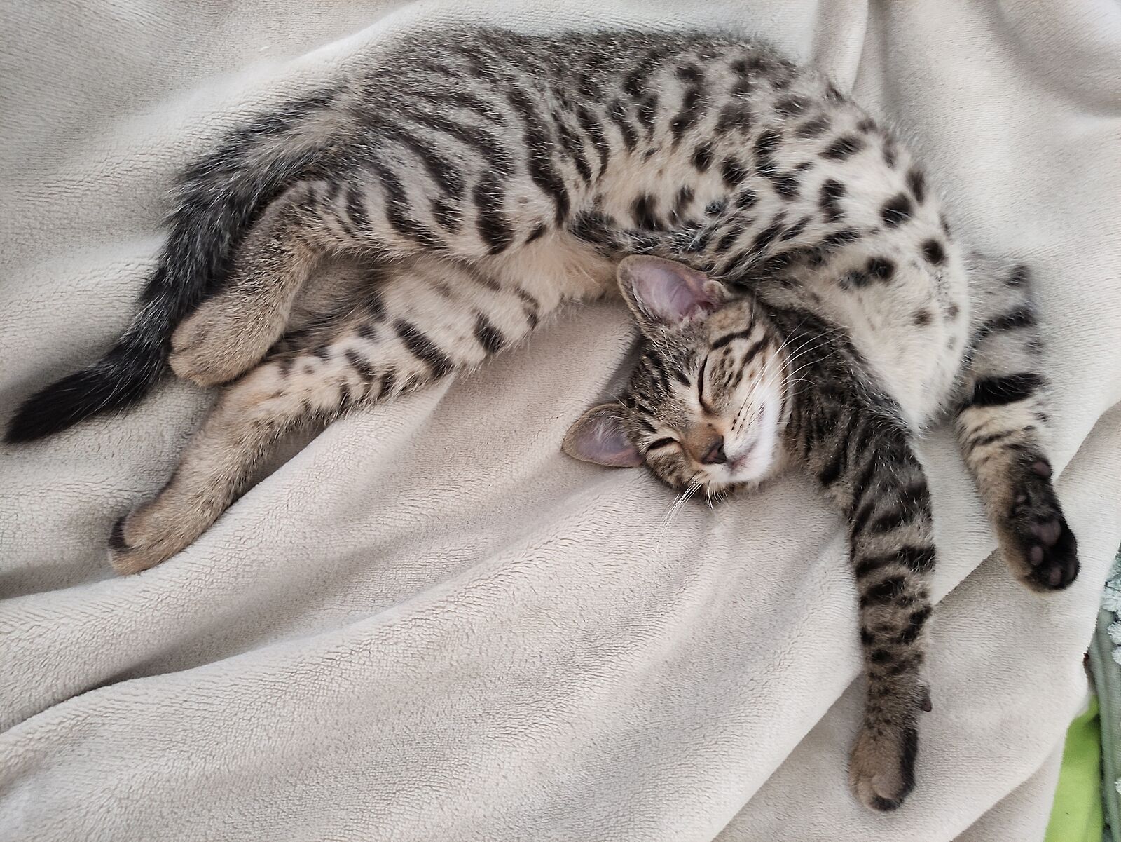 Взяли лишайного, больного котенка в приюте. Вот вырос какой. Расцветка у него мраморная.