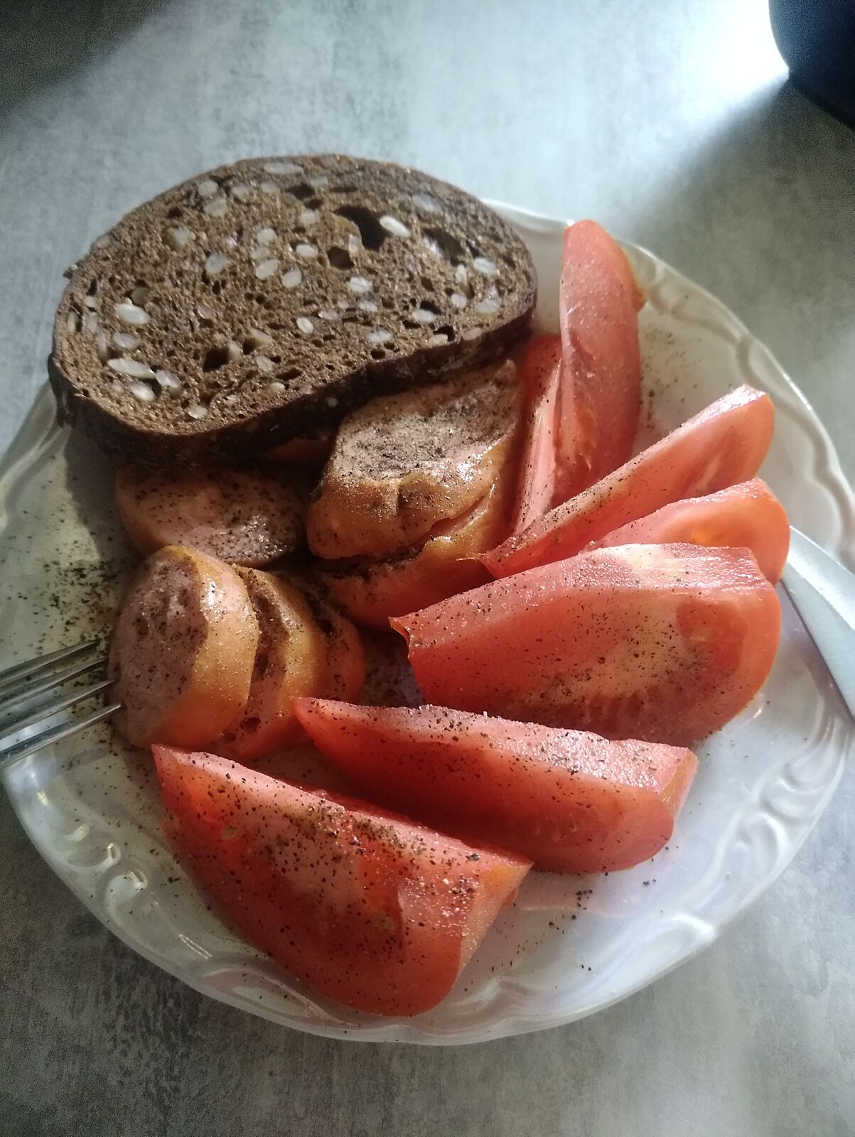 2 яйца скрембл, кофе, сыр моцарелла, пару орешков и у тортика выгребла пару ложек начинки... тк коржи мне не понравились маргариновые..