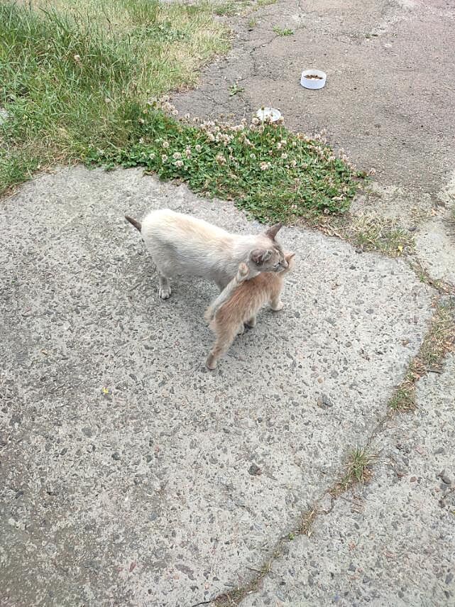 Знакомая любительница ’подбирашек’, приносит с улицы, выхаживает, лечит и потом пристраивает. Некоторые у неё остаются. Наверное эту не успела стерилизовать. А может кто-то беременную выкинул/выгнал. Котики живут в частном доме в пригороде Киева.