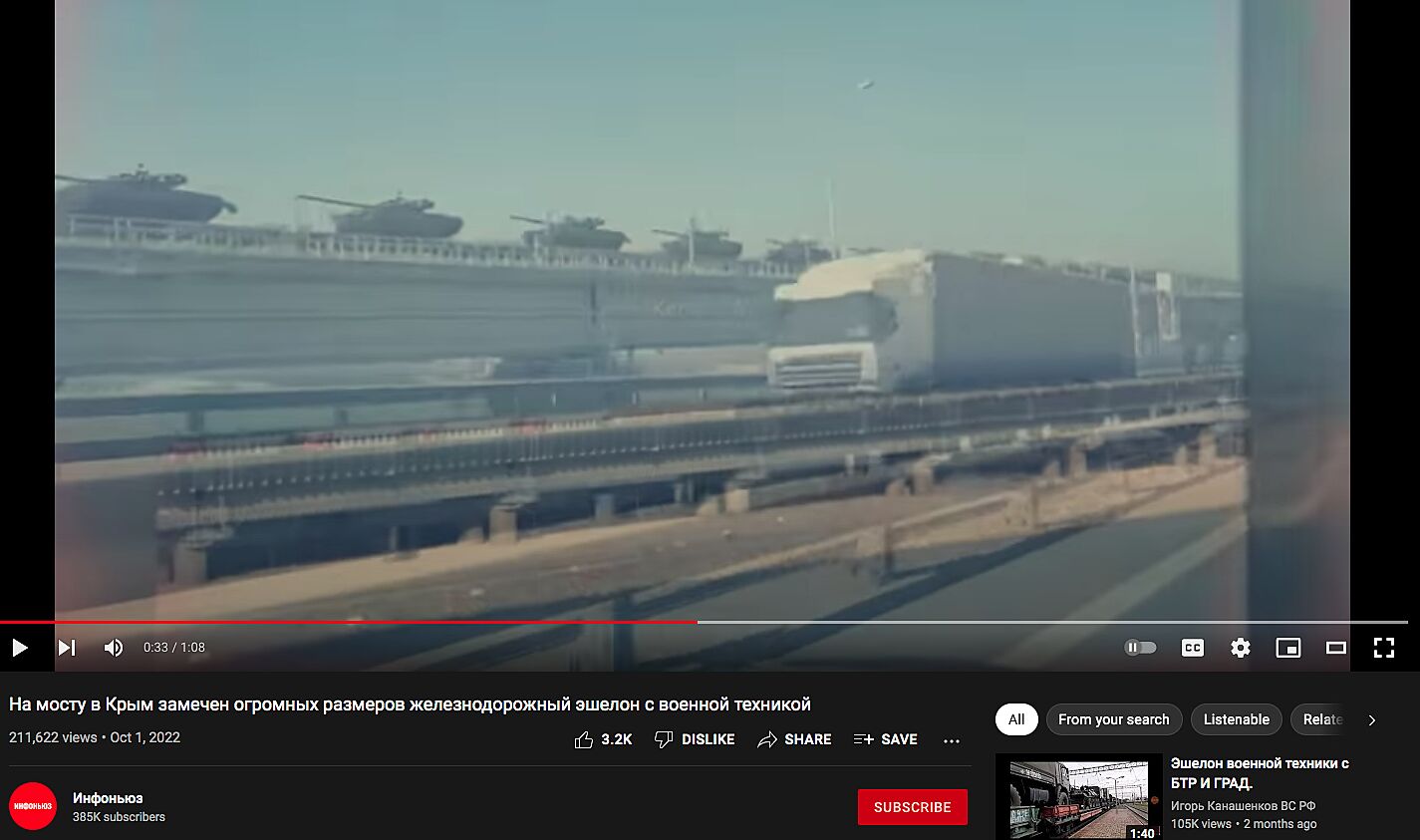 Вот кстати нашла на ютубе еще пару русских наводчиков: один выспрашивает про технику военную и состояние моста, другой сдает зашифрованную информацию в ответ