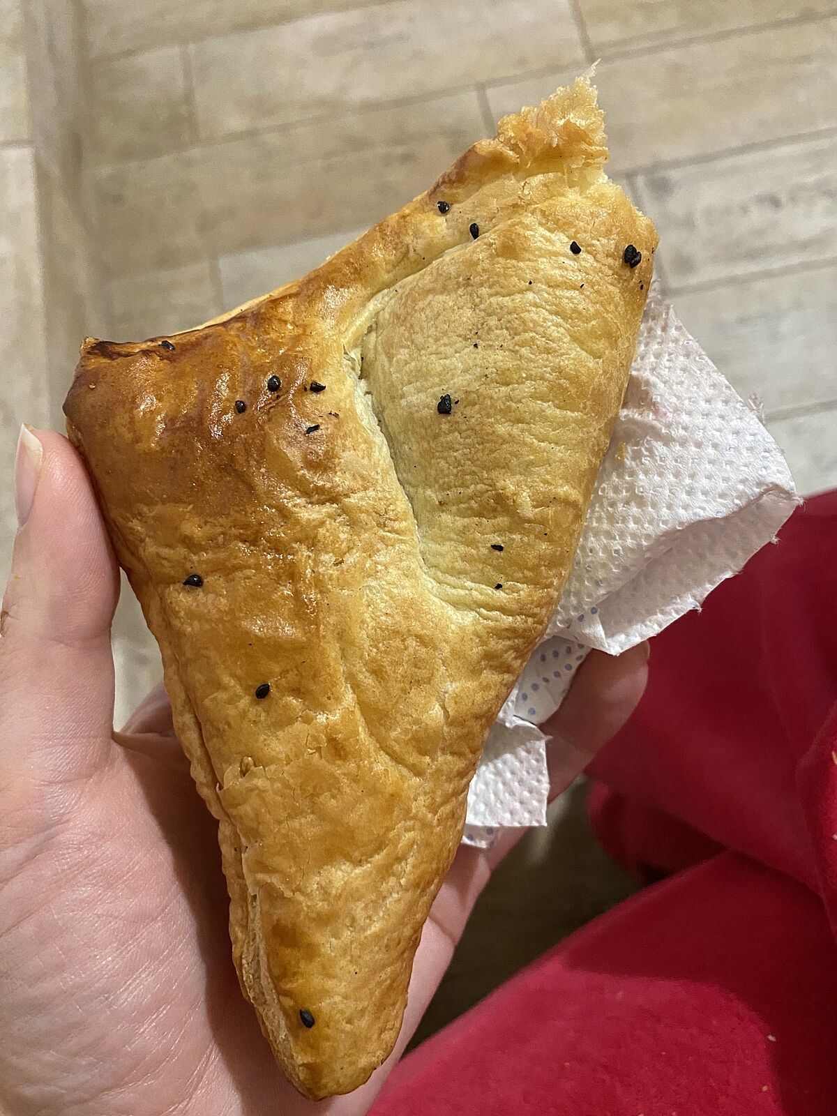 У нас все просто, слойки с мясом из Сильпо жуем с кофе, только домой зашли, нет сил готовить
