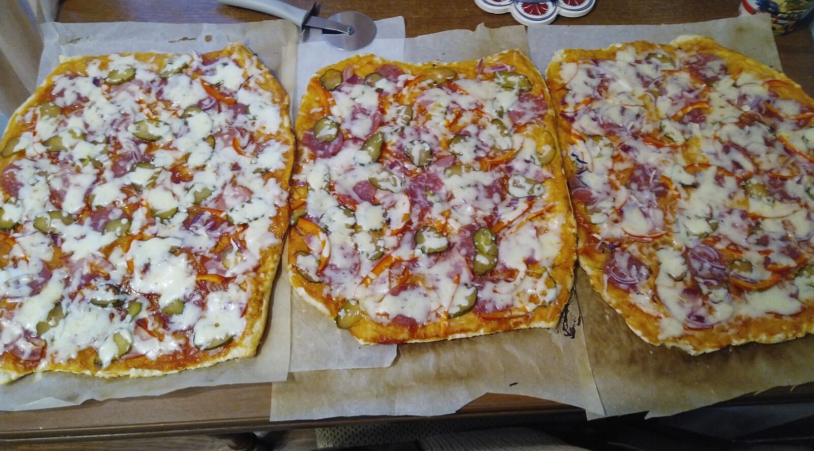 Обычно курица, рыба, гарнир, салат. Иногда творог, сырники, уха. Вчера была пицца и овощи тушеные