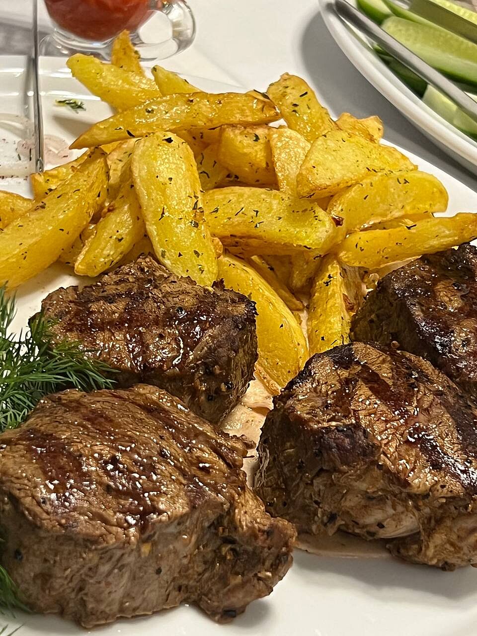 Разглядела, что жаренная картошка. Для меня есть такое - преступления против себя, тем более на ночь.