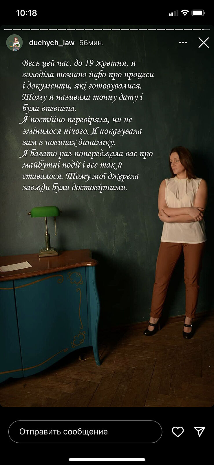 А у нее от обратного. Обшарпанные стены, картины какие то страшные. Сама не ухоженная. Сомневаюсь , что она Юрист. Потому что такой брехней сама себе карьеру сломала. Кто после такого к ней пойдёт даже на консультацию?