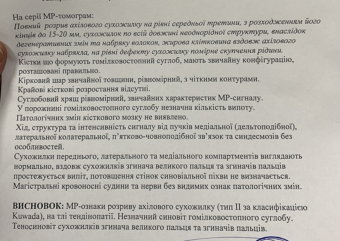 У мужа случился разрыв во время тренировки - сделали Мрт, вот такое дали заключение. Это только операция? Или можно лечить консервативным методом с гипсом? Врач сказал, что только операция, завтра идём ещё к одному, места себе не нахожу