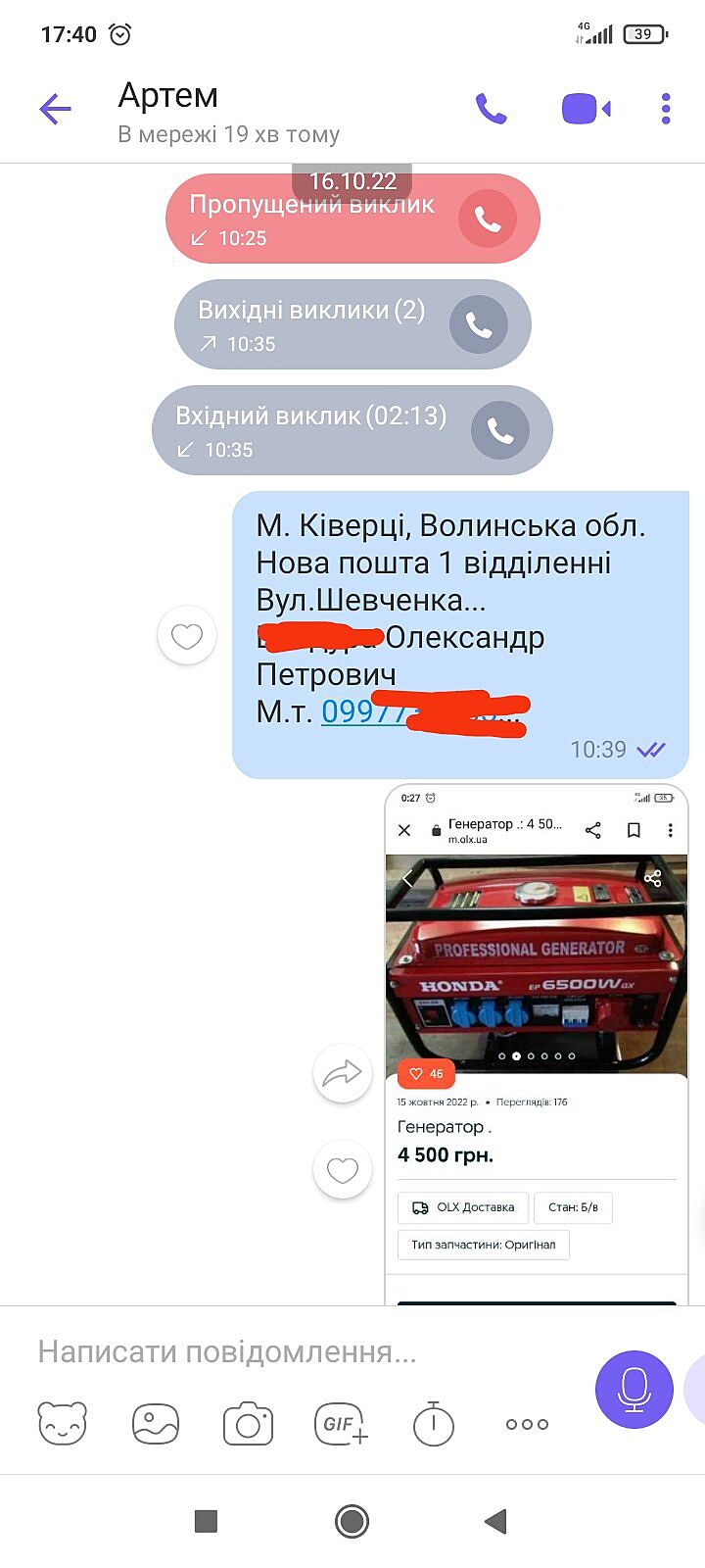 Чоловік попався на вудку, скинув передоплату за генератор 1350грн(з моєї картки), і все, заблокували. Мене теж заблокували,як написала. Але продовжують виставляти ті червоні генератори, і з тими самими мобільними номерами, але з інших акаунтів. Кому скучно - можете їх потролити. Домовлялися по телефону, ось їх номер картки 5355086022613375. В мене збереглися голосові повідомлення від дівчини,вона там чоловікові розказувала туфту, на жаль, сюди не можу прикріпити. Якщо комусь треба, можливо щоб розпізнати голос - скину на Вайбер. Ці дві особи - ніби чоловік і жінка, він розказує, що зараз за кордоном, а жінка відправить. Жінка каже, що треба передоплату на обриштовку, інакше не буде відправляти (пс- на наложку типу згідні), бо "ви не заберете, а мені прийдеться оплачувати". Можливо комусь пригодиться)