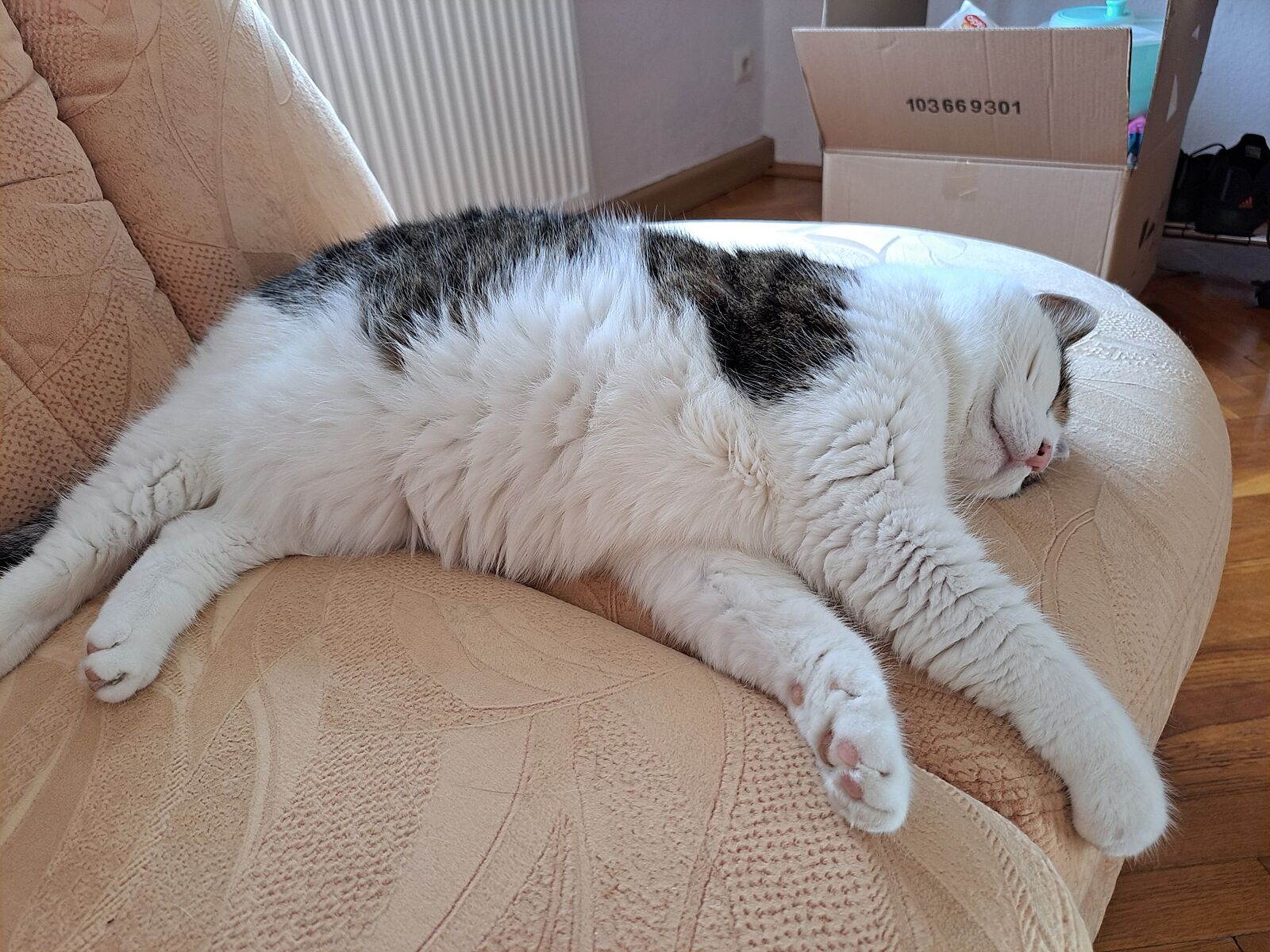 И соседский котэ, тоже по полдня у нас тусуется каждый день.
