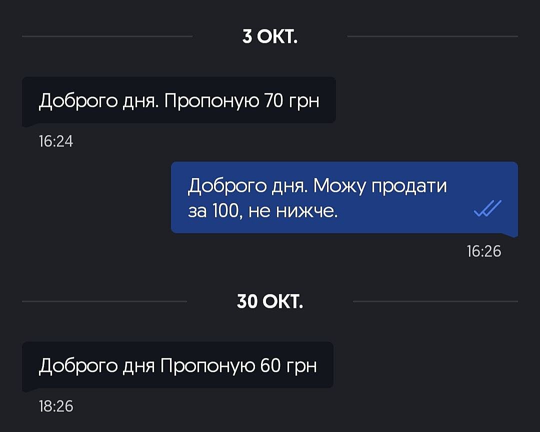 Не просто ’70?’ А ни здрасьте, ни досвидание, а ’заберу за 70’