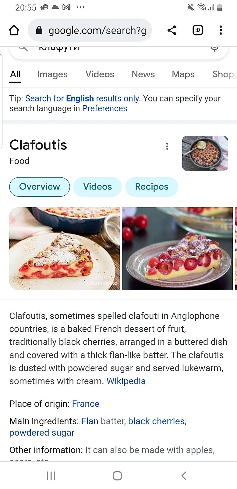 В клафути вишня и сливки вообще-то...