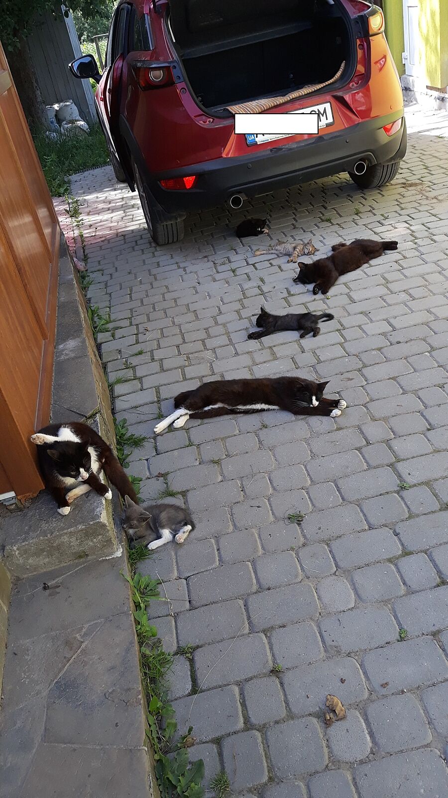 Кішку вагітну викинули, вона чорна, 5 кошенят, 2 таких як мій,один сіренький як шпроти, один чорний, ще одного забрали наче. Місто Кам‘янське дніпропетровської обл.