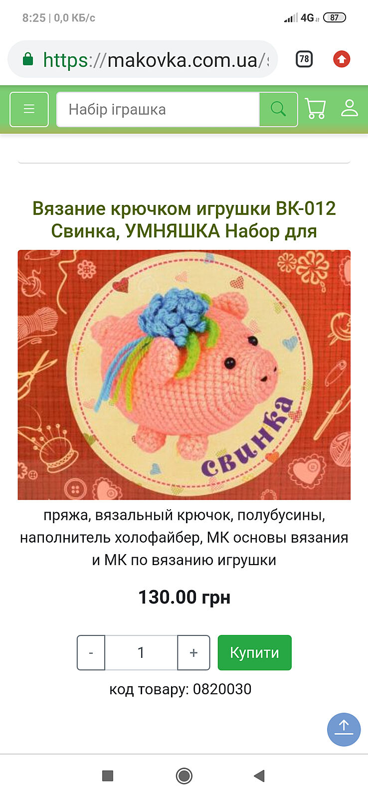 Подорожчали набори в маковці. Там 6 наборів. В набір входить нитки, гачок, інструкція, очі і нічого докупляти не треба. Є котик, ведмедик, сова, порося, заєць, жираф.