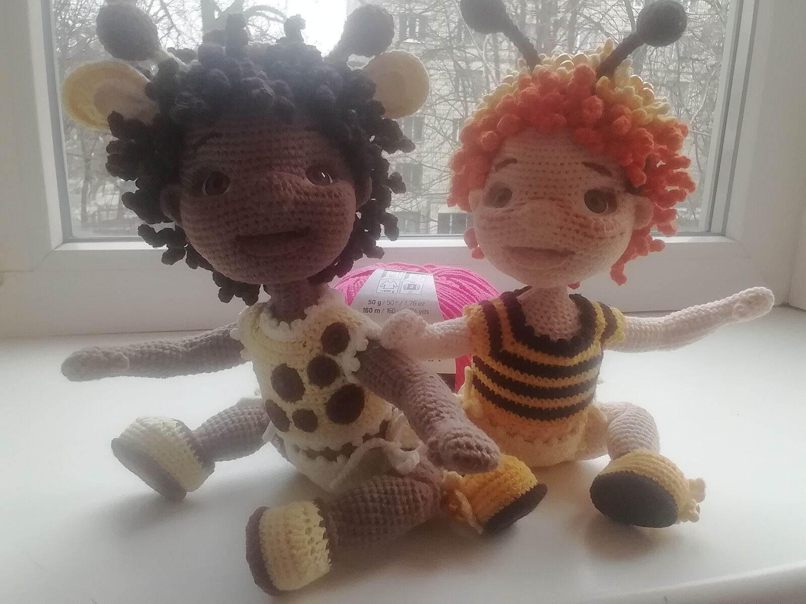 Іграшки не в´яжу, але дуже хотіла навчитись. Крючком я вміла робити петельки і знала як в´язати стовпчики. Але це мене колись вчила бабуся, але як вони називаються я не знала і коли дивилась на схеми, то не знала де який. Купила коробку з іграшкою, там усе є. І є інструкція і по ній я все розібралась. Зараз покажу свої перші іграшки. Коли забуваю як в´язати, то дістаю ту інструкцію. Також на другій іграшці я навчилась міняти колір нитки при в´язанні. Кроликів, то є вже в інеті знайшла схему.