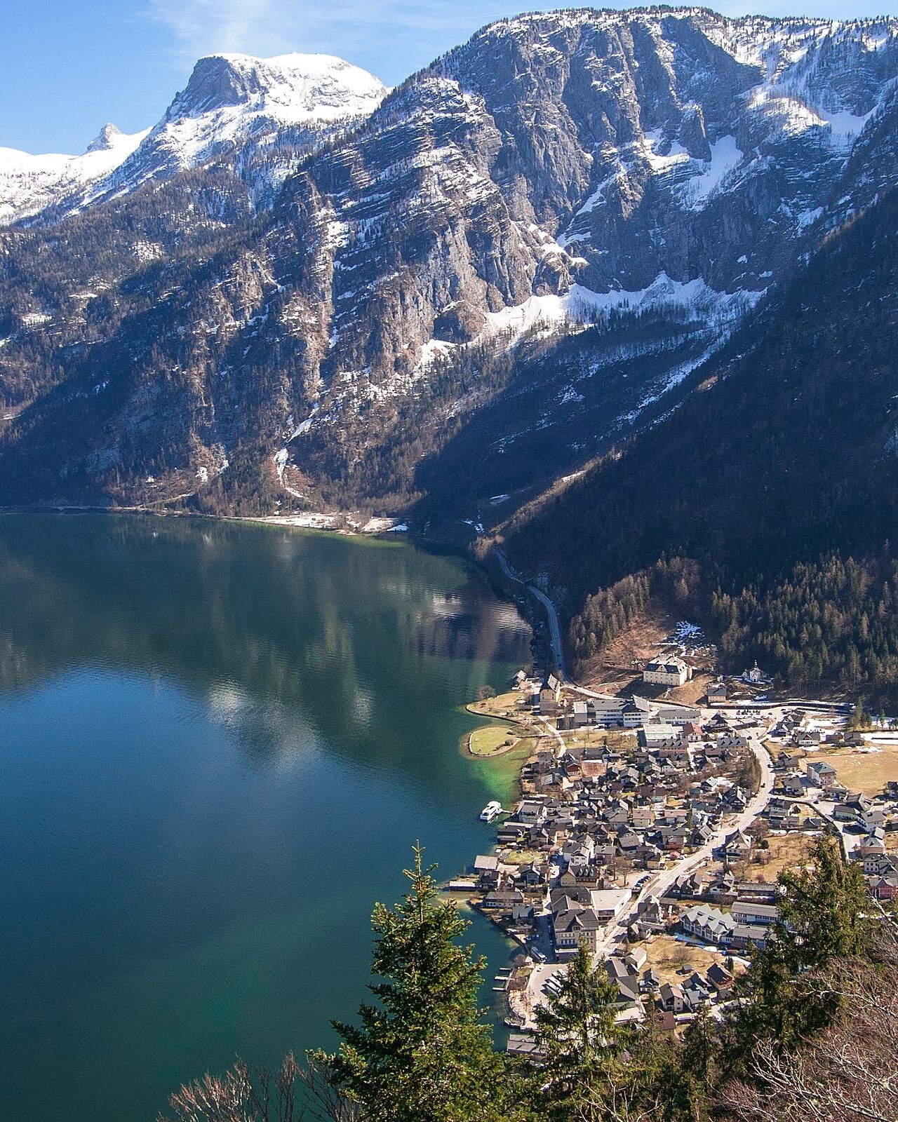 Гальштатт на горе, а у вас на фото поселок на ровной местности церкви на фото нет.