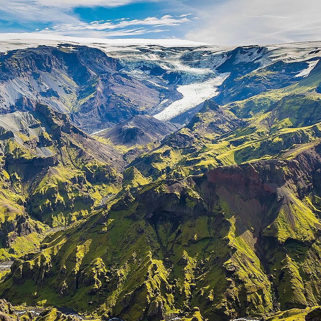 Може бути що завгодно з горами. Гори не високі, без снігу майже, зелені- дуже волого. Ісландія можливо, но не точно