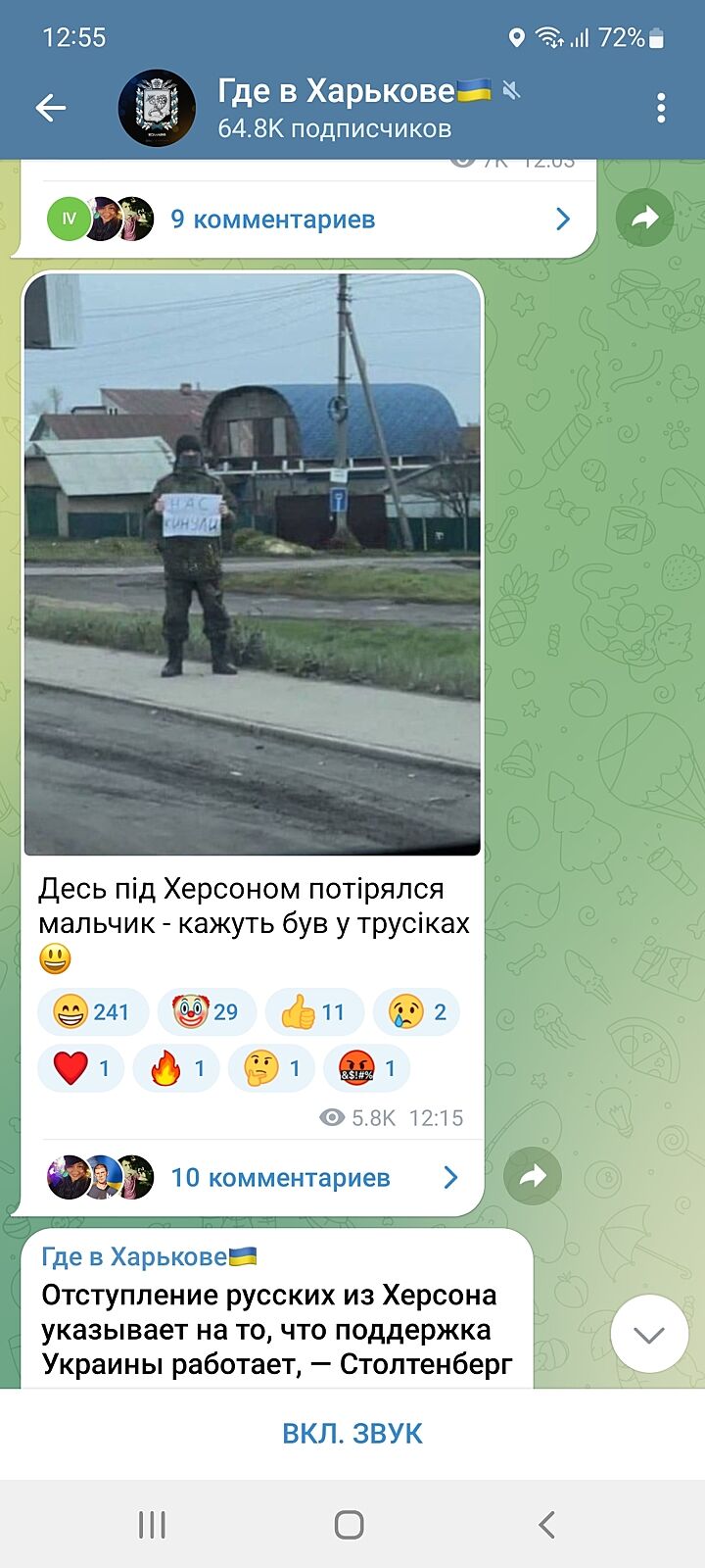 Нам в новостях, кстати, ничего радужного о Херсонском направлении не пишут. Ни один официальный канал
