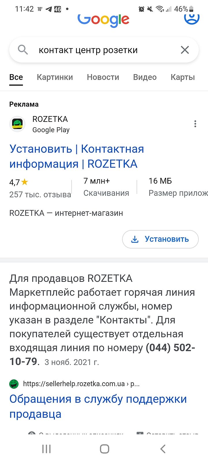 у кого-то сохранился номер контакт центра розетки?