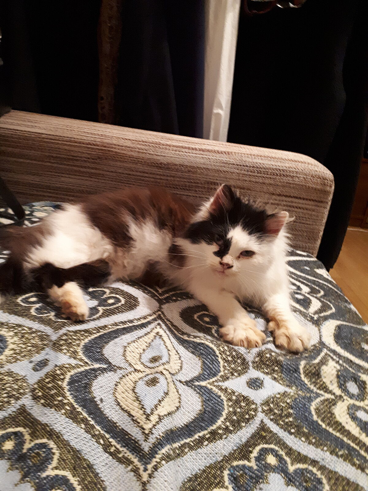 )) сегодня сама задалась уже мыслью, а вдруг хозяева найдутся... а х.з. как по мне выброшенная и целое лето до вчерашнего дня жила на подкормке у родителей и соседей, спала на сене, на огороде, подоконнике-на улице, где найдет. По отсуствию половины хвоста, зубов и что приучена к лотку, не дикая- однозначно была домашняя. Фото. Вообщем пока она Пуся-приставучка, на пару мин.от меня не отходит, окна открытого и балкона боится-сразу под тумбы прячется. Как-то так. Пока вычухиваю. Но судя по прайсам, мои желания с пристройством в ’добрые руки’ с кажлым чеком пропадают