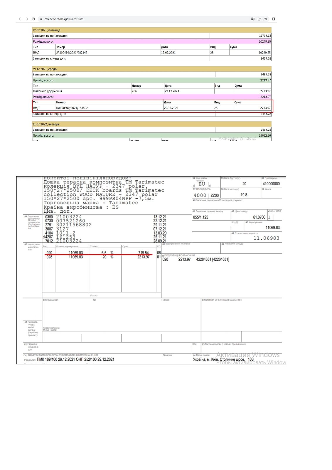 якщо у Вас є можливість гляньте будь ласка своїм професійним оком ситуацію з мито. я заскрінила за 29.12.2021 взаєморозрахунки з митницею і саму ГТД. В ГТД є мито, а в кабінеті митниці в взаєморозрахунках мита немає, лише ПДВ. гляньте будь ласка, може я щось не так дивлюся. буду дуже вам вдячна!