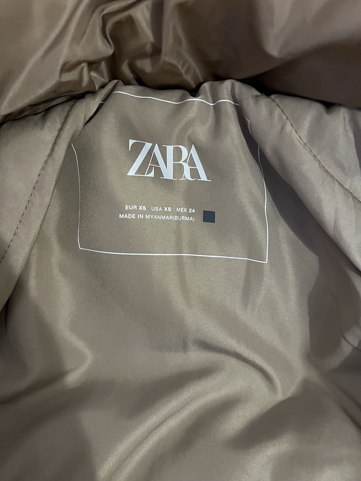 У меня такая же бежевая, но этикетка другая Zara и фурнитура- замок бежевый ’трактор’. Куртка отличная.