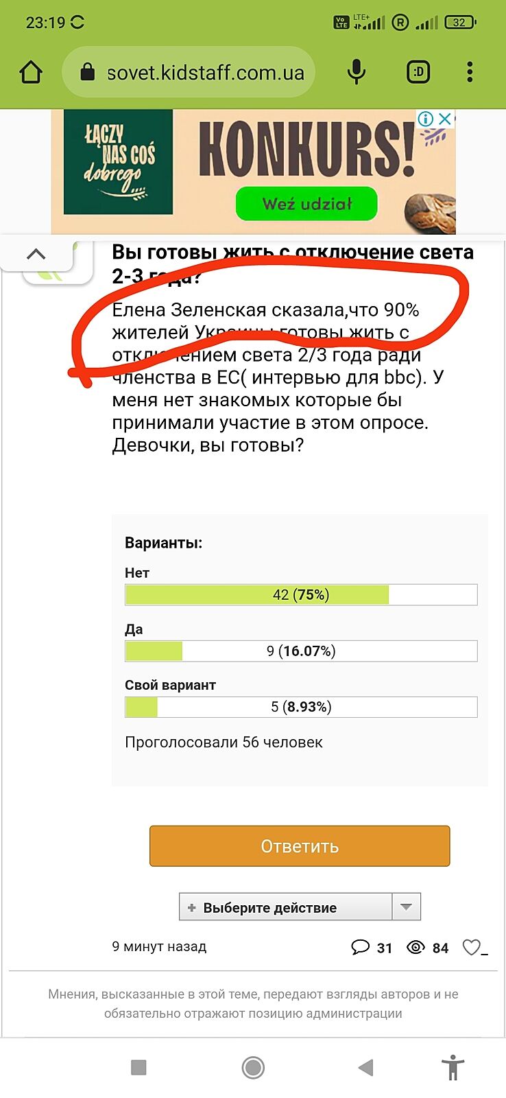Елена Зеленская сказала,что 90% жителей Украины готовы жить с отключением света 2/3 года ради членства в ЕС( интервью для bbc). У меня нет знакомых которые бы принимали участие в этом опросе. Девочки, вы готовы?