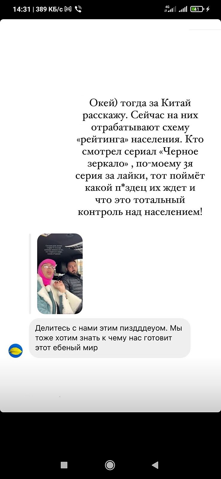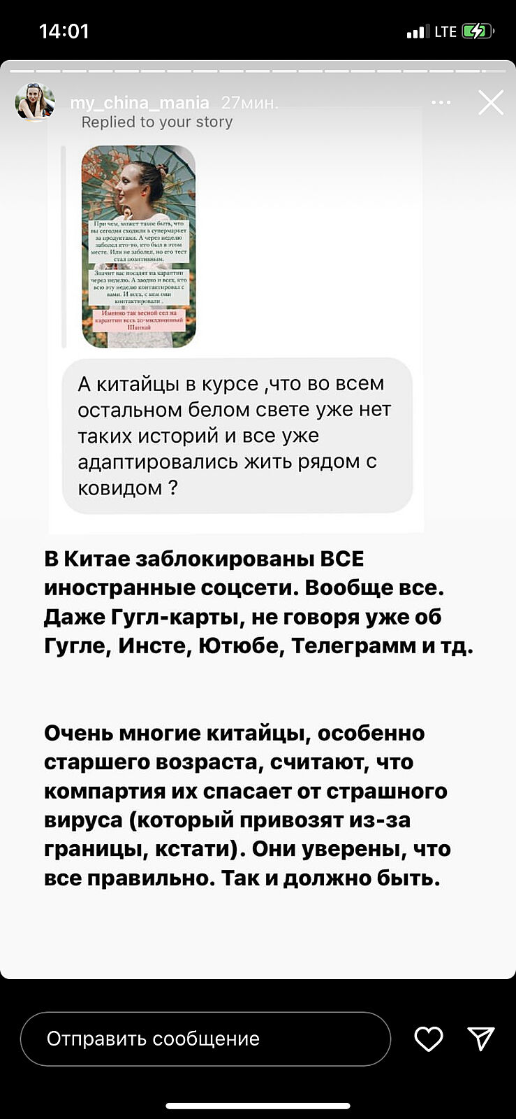 Кто еще не знает, китайцы (очень много) вышли на протесты и требуют отставки Си. Все наши блогеры, которые сейчас проживают там, или хотят вернуться -умалчивают (говорила об этом lovimenja), но намекают всячески у себя в блоге, только вчера нашла по рекомендации одного блогера my_china_mania из Украины (она уехала из Китая), которая может это все освещать и имеет еще доступ к вичату. Я еще думаю почему две блогерши уже долгое время не выкладывают оттуда, вообще ни одной сториз, ни поста, ничего.. Например olegovna_in_china (она снимала каждый день как ходят на тесты). Может как-то заблокирован ей сейчас доступ через впн в инстаграм.. пока жду новостей. А вы посоветуйте на кого подписаны из Китая и освещает данную проблему?