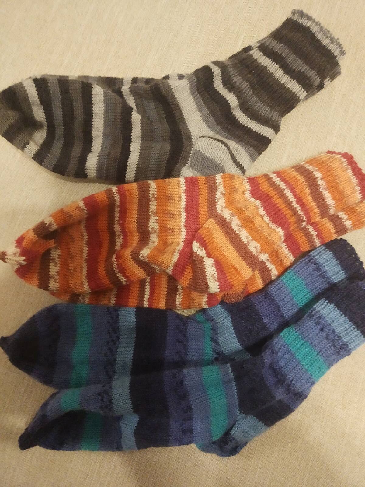 я ніколи не в*язала носки і взагалі років 10 вже не брала спиці до рук, почалася війна. Весь час морозить. Щось треба робити. Зв*язала зі звичайних. Протерся швидко, носила по квартирі. Потім такі нитки купила і тут почала в*язати рідним.