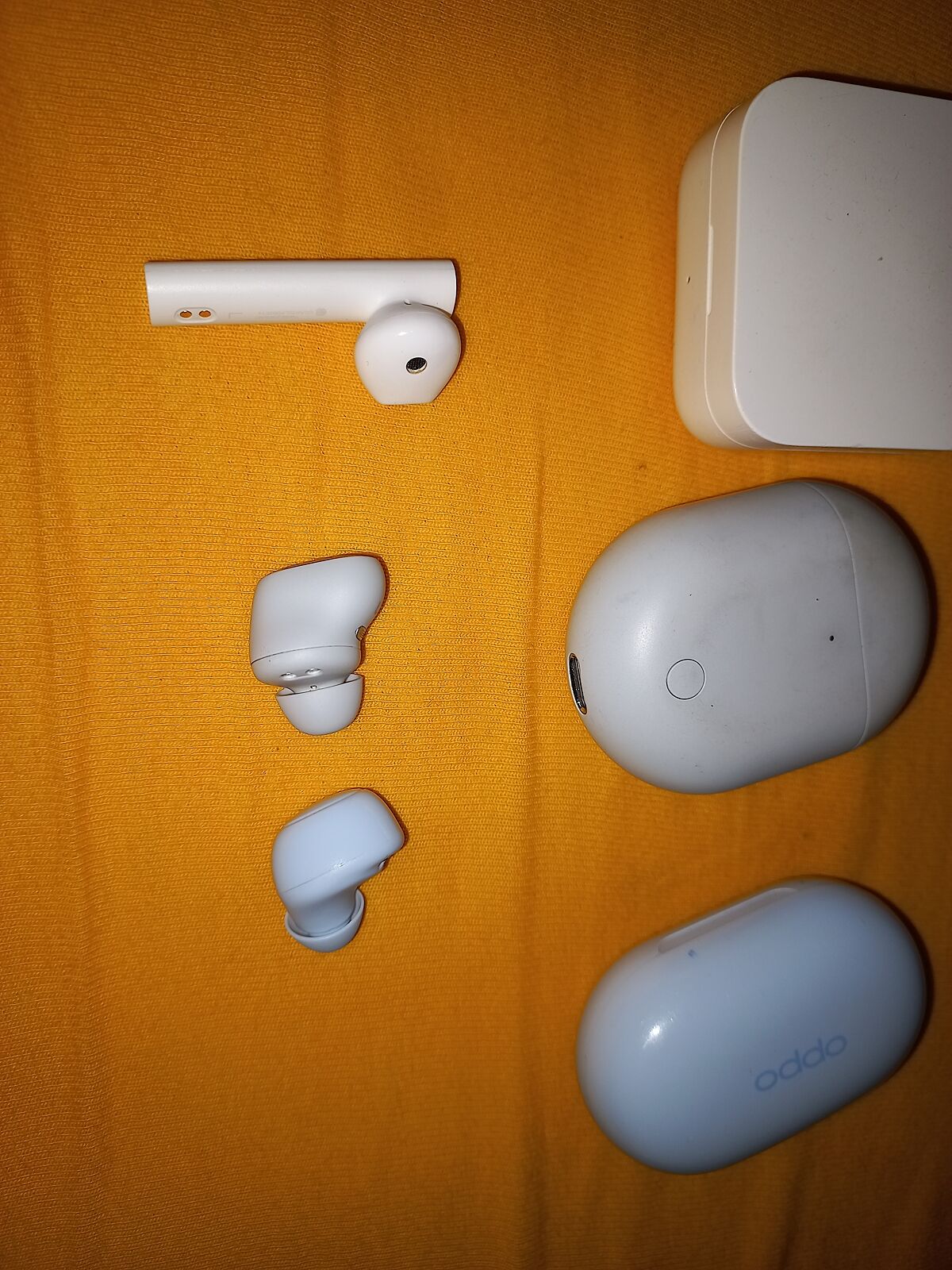 Белые-наушники сына, мои-посередине, голубые-младшей дочери. Сыну покупала ’без примерки’, себе долго подбирала, потому что в его наушниках мне неудобно.