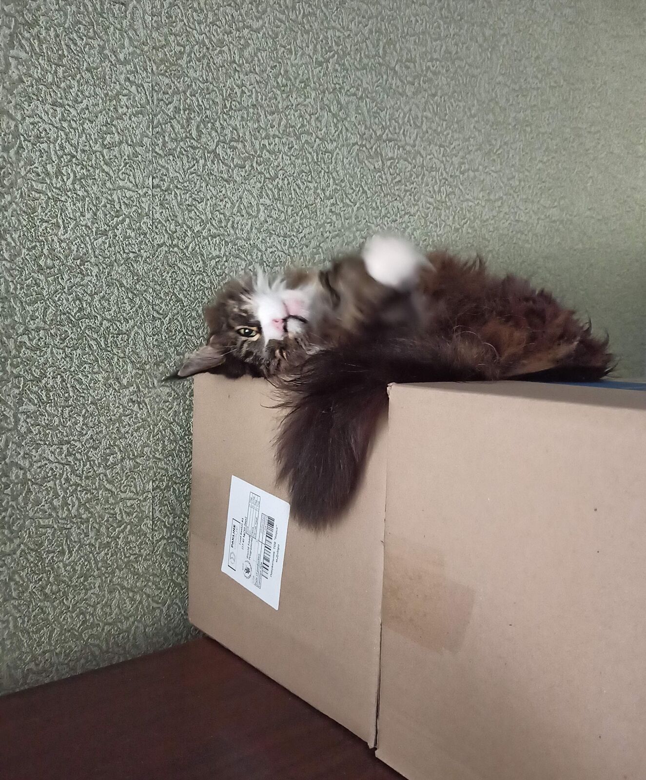 А если коробку от чего нибудь поставить, не залазит в нее?