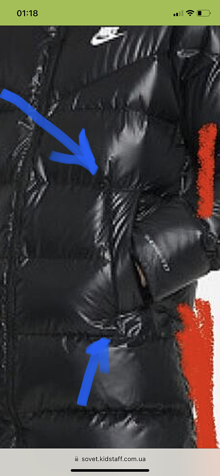 Отметила, где вижу шов. Но, куртки разные, хотелось бы видеть куртку автора на сайте, если она найдёт по арт.