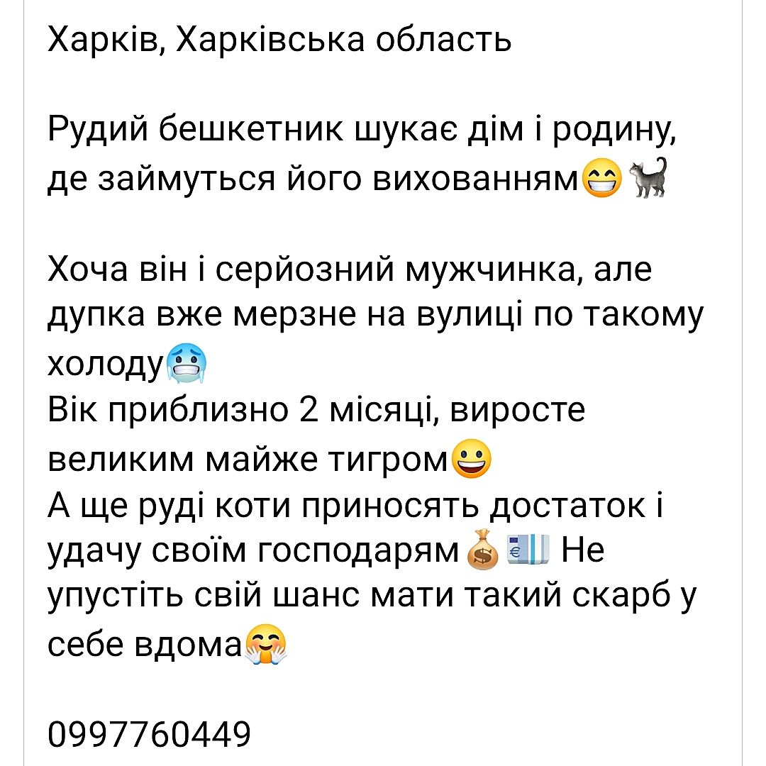 Я б забрала. Есть кошка, но ещё бы одного завела. В этого прямо влюбилась. Но я не в Харькове, хотя не далеко