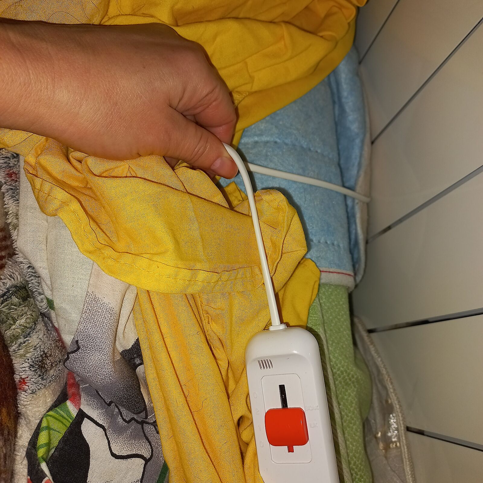 Головне, щоб розетка була поруч,щоб не возитися з увімкненням. Ось вона воно вже працює, я зверху ще на покривалі лежу