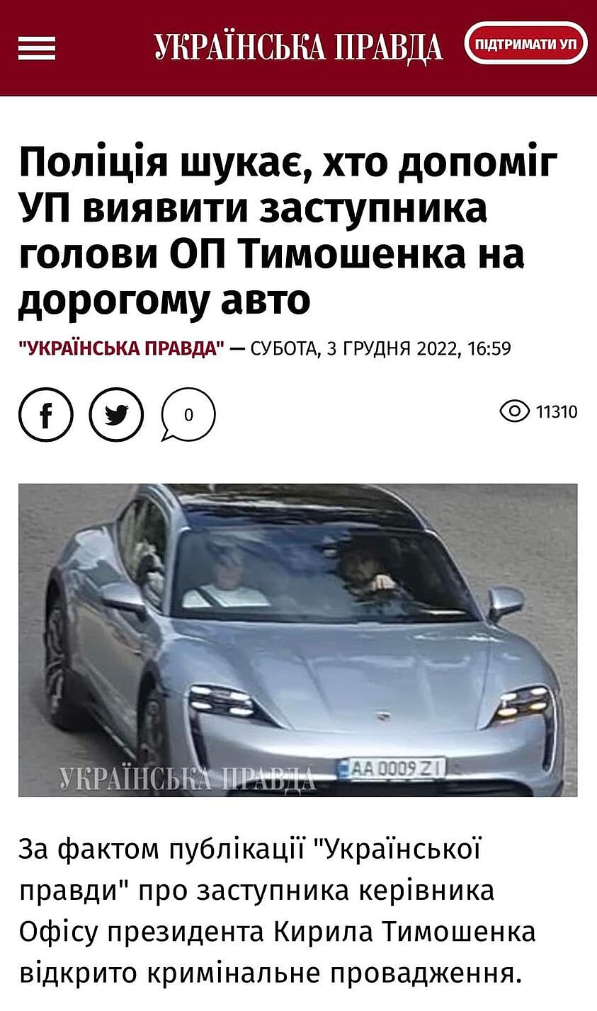 Поліція намагається знайти інформатора, який допоміг “Українській правді” провести розслідування про дороге авто заступника керівника Офісу президента Кирила Тимошенка. Для цього було відкрито кримінальне провадження за фактом “несанкціонованого копіювання інформації з системи камер відеоспостереження “Безпечне місто”.