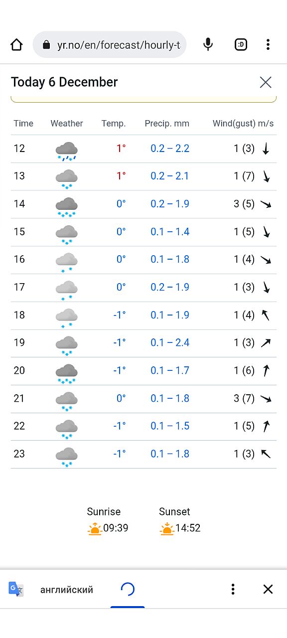 Прогноз на сегодня. Северо -запад центральной Норвегии.